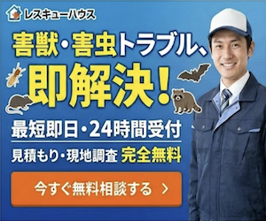 レスキューハウスは、調査・駆除・再発防止まで一括対応している点が特徴です。まずは無料見積もりで状況を確認してみてください。